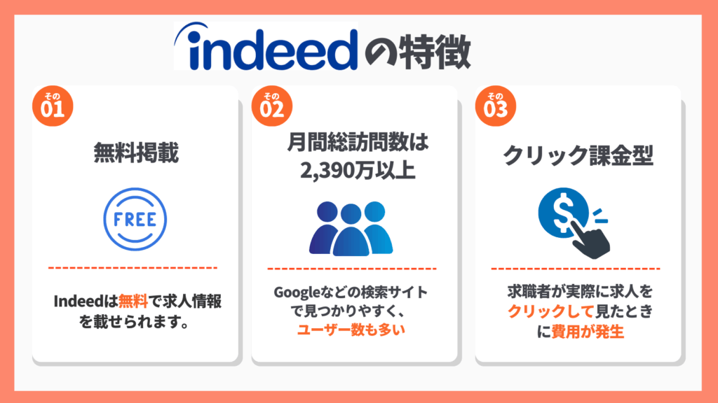 Indeedの特徴は3つです。