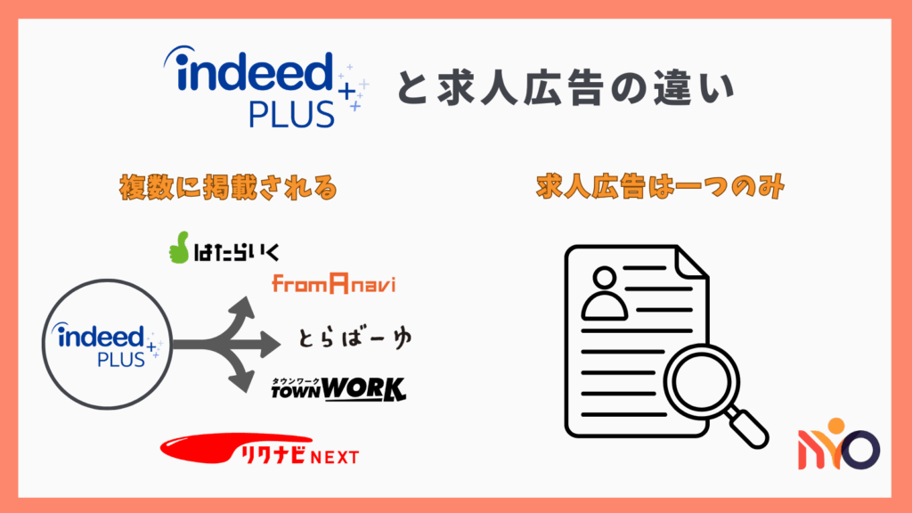 Indeed PLUS(インディードプラス)と求人広告の違いは、掲載範囲です。